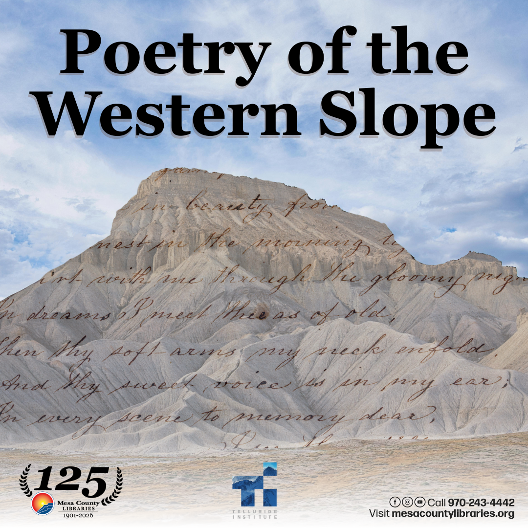 Come enjoy the poetry of these six award-winning authors as they perform poems about the region and talk about what makes the landscape here on the Western Slope so special, how language and landscape are joined at the hip and why so many people are turning to the arts—and poetry to enrich their lives.