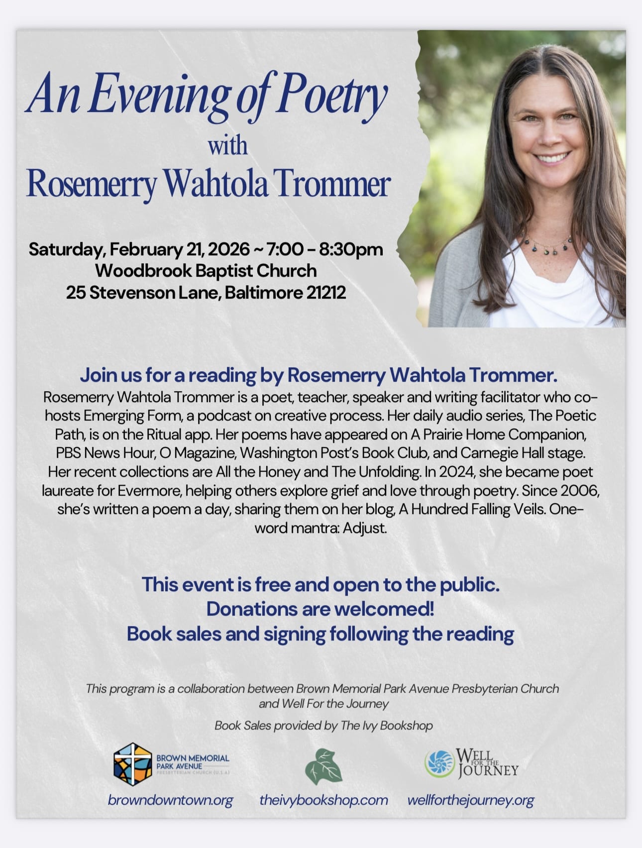 A Weekend of Poetry ~ An Evening of Poetry with Rosemerry Wahtola Trommer